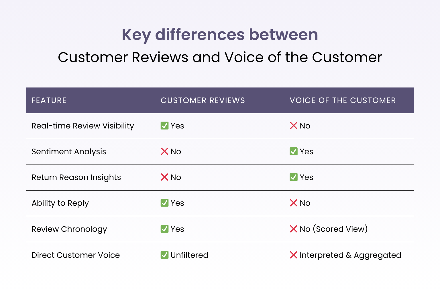 Unlike Customer Reviews, which offered raw, chronological feedback from buyers, VOC uses structured data and scoring systems to surface issues that may affect product health and customer satisfaction.